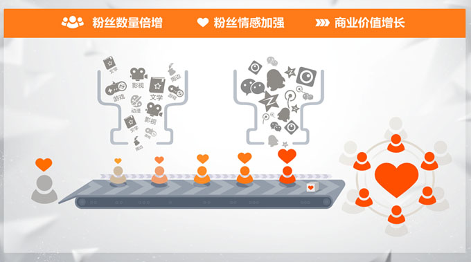 那粉絲的核心又是什么呢?首先先想想粉絲有什么特征,粉絲喜歡一個人或是事物,往往都是基于情感的方面的,甚至是不理性的、無條件的喜歡或是愛。所以粉絲的核心在于情感,要從情感上去征服用戶。而粉絲經濟的產生,上面江禮坤和大家已經探討過,現在是一個產品和品牌泛濫的年代,大的企業和品牌也都越來越重要用戶體驗,在這種情況下,就需要再將用戶轉變成粉絲了。