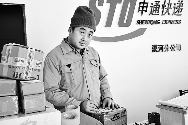 快遞人員每天接單的電商外郵的綠色食品很多。 閆捍江攝