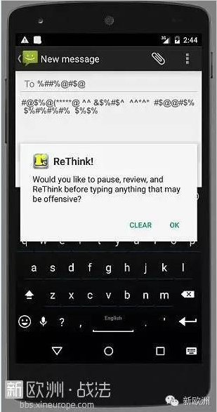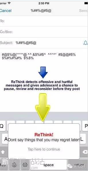 她開發(fā)的ReThink APP會掃描人們準(zhǔn)備發(fā)布在網(wǎng)絡(luò)上的信息內(nèi)容,當(dāng)檢測到有攻擊意味太強(qiáng)的內(nèi)容時便會發(fā)出這種類型的警告: